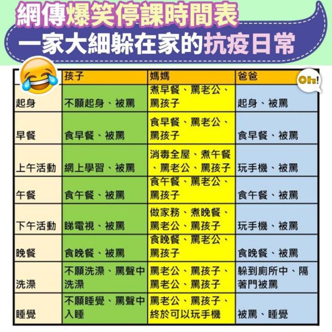 實際係點?以下瘋傳的就是很多家庭的「停課不停學」實際情況: